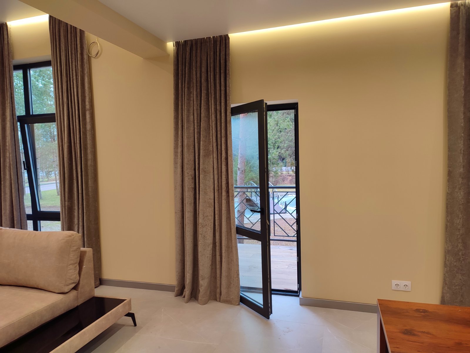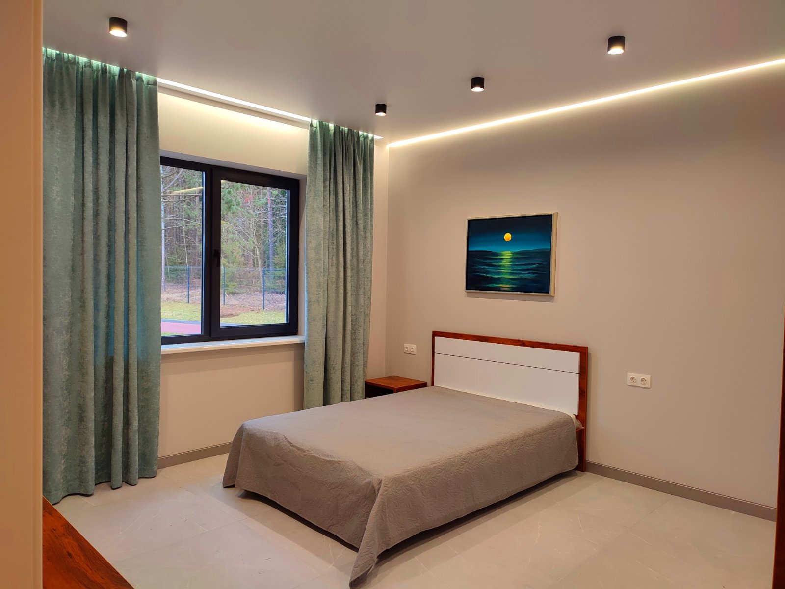 Отдельно стоящие домики со своей территорией. Из окон номеров открывается вид на лес. Портьеры на окнах обладают повышенной светоизоляцией. В номере две односпальные кровати с возможностью объединения в одну двуспальную, письменный стол, шкаф для хранения одежды, прямая телефонная линия, холодильник, телевизор, кондиционер, сейф, чайная станция, питьевая вода. Удобная ванная комната с душевой, комплектом хлопковых полотенец, феном, тапочками и косметическими принадлежностями (шампунь, кондиционер, гель для душа, мыло).